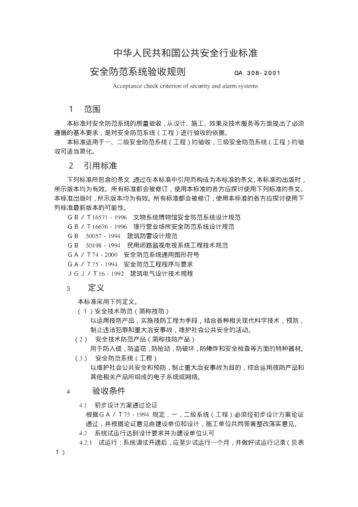 GA 308-2001 安全防范系统验收规则