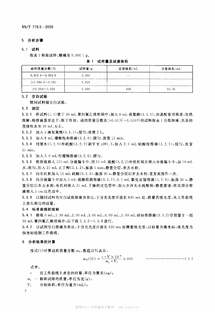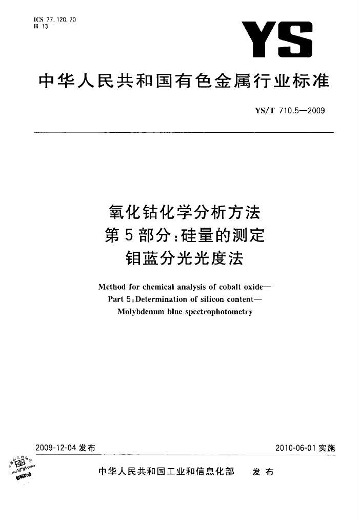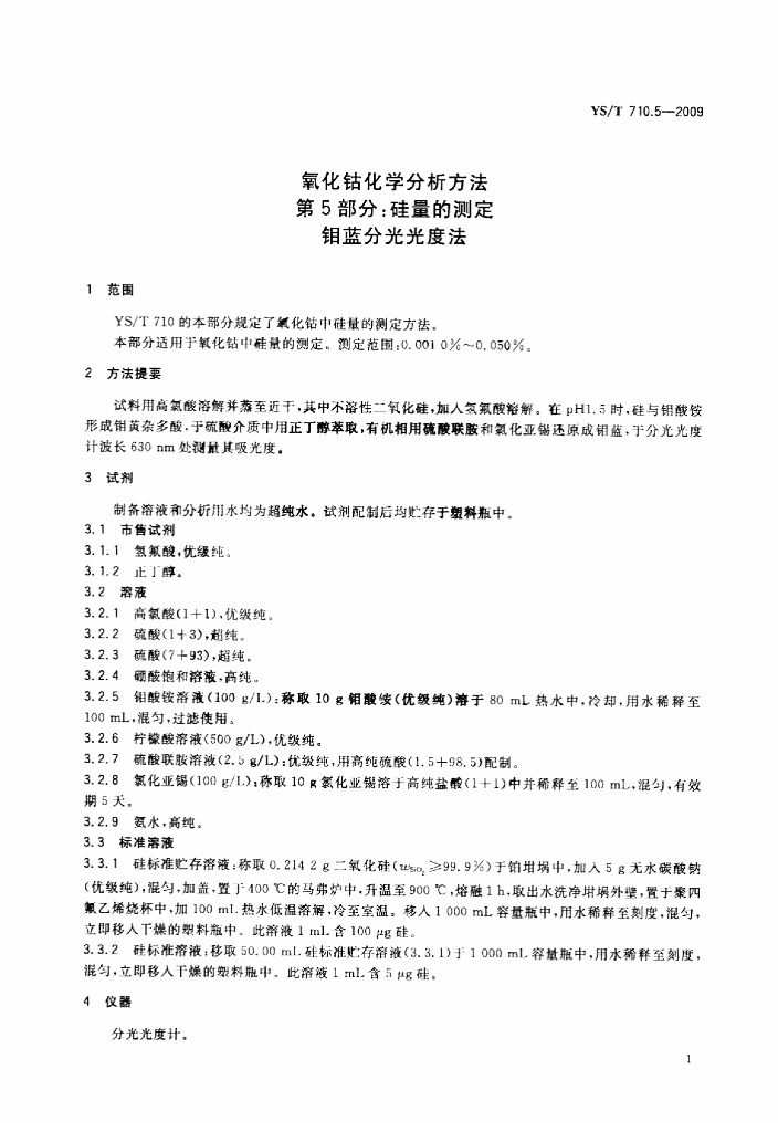 YS/T 710.5-2009 氧化钴化学分析方法 第5部分:硅量的测定 钼蓝分光光度法