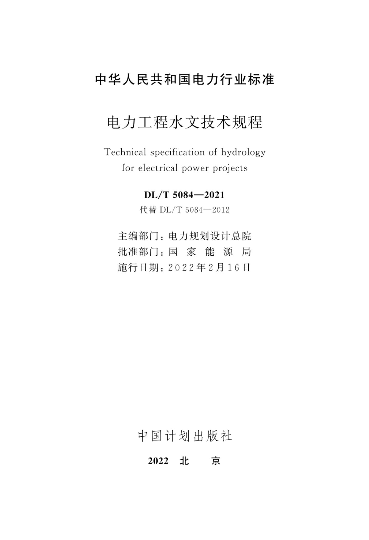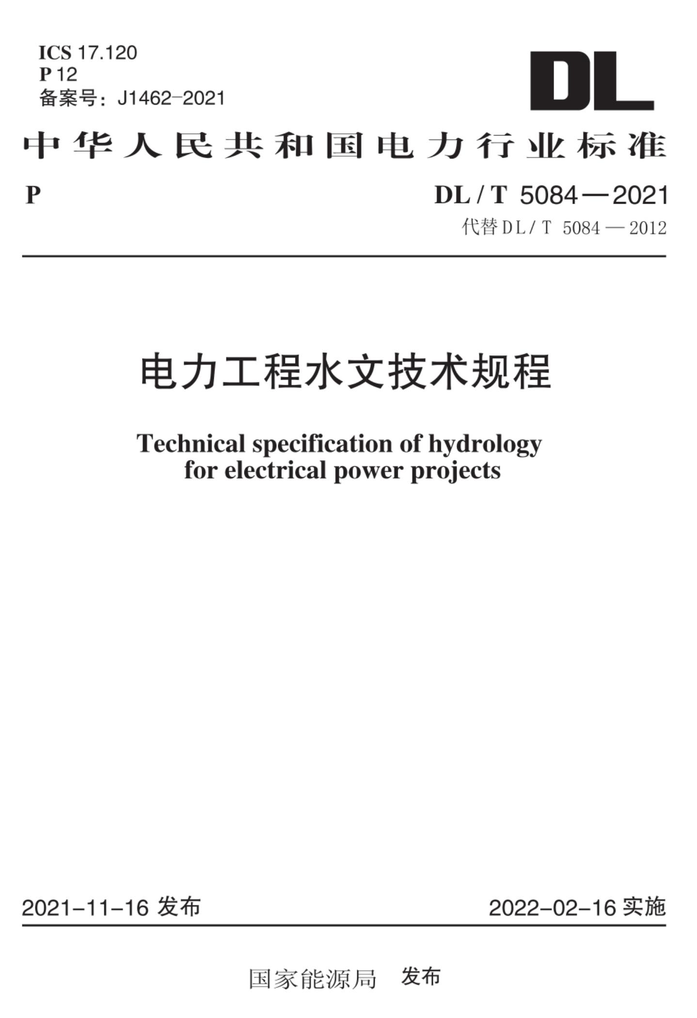 DL/T 5084-2021 电力工程水文技术规程(附条文说明)