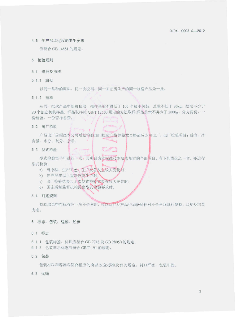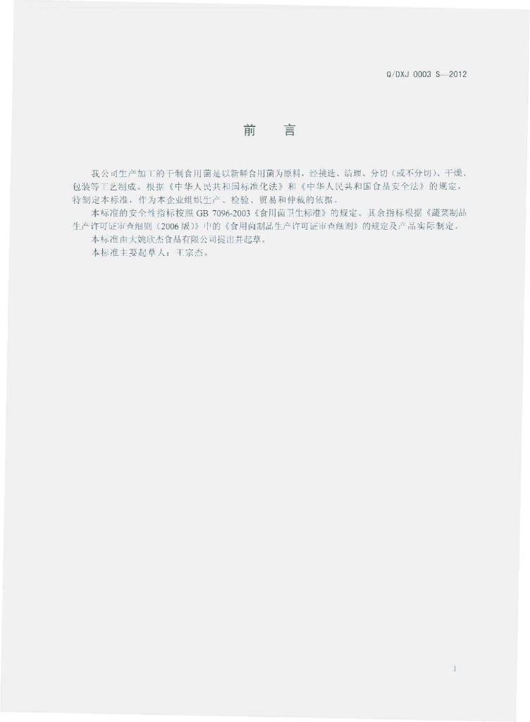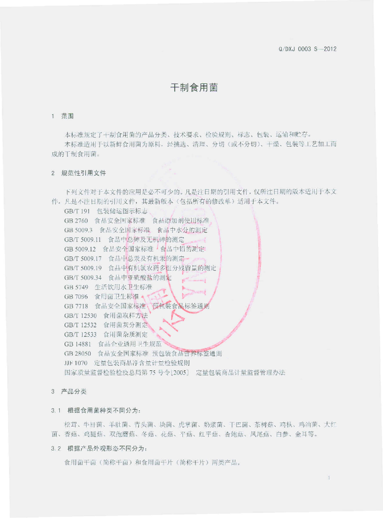 Q/DXJ 0003S-2012 干制食用菌