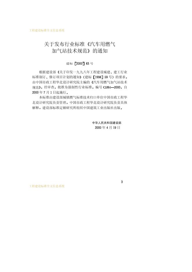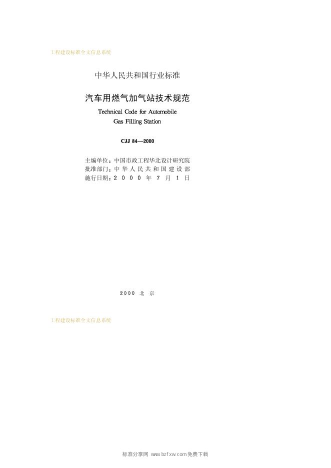 CJJ 84-2000 汽车用燃气加气站技术规范