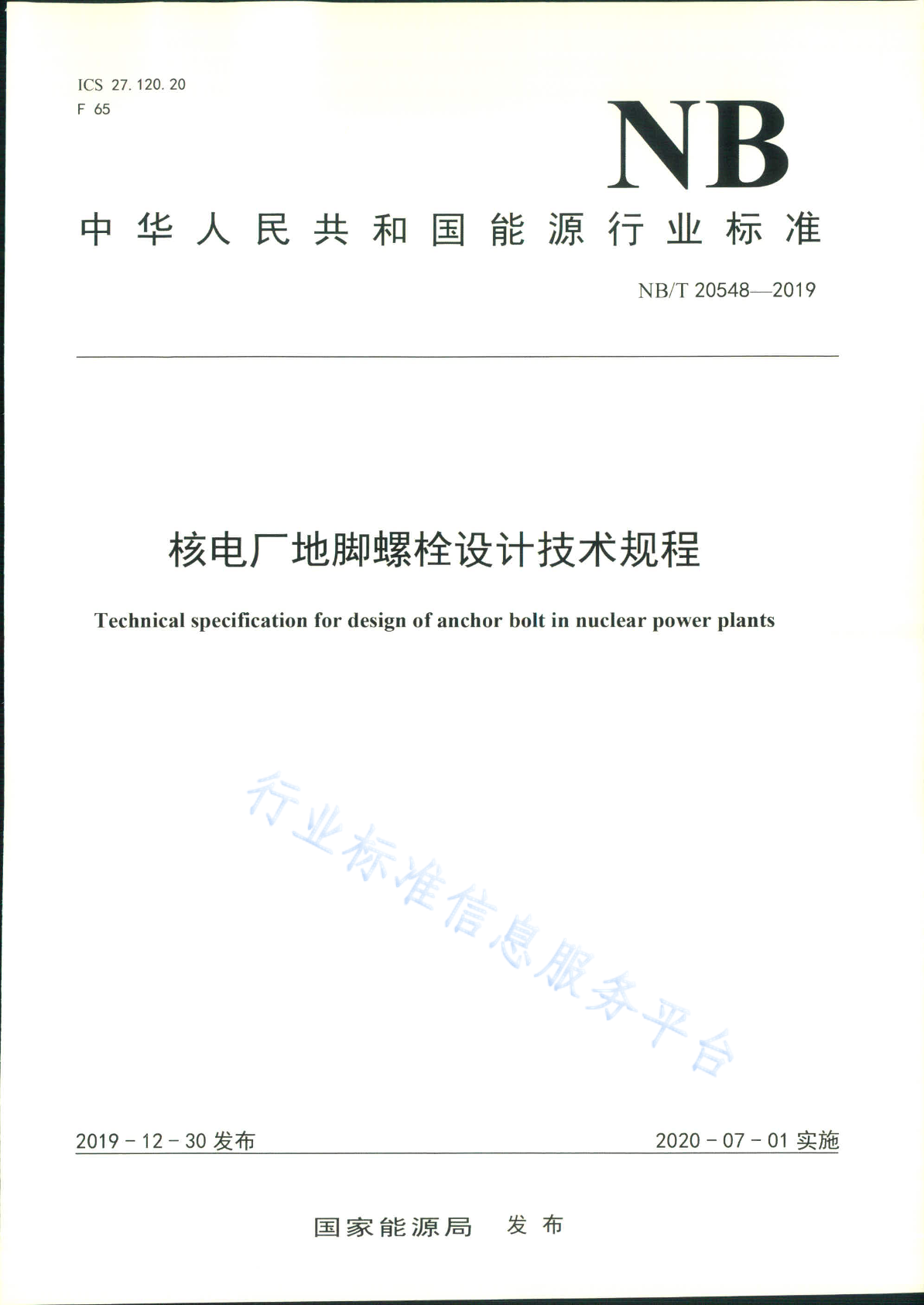 NB/T 20548-2019 核电厂地脚螺栓设计技术规程