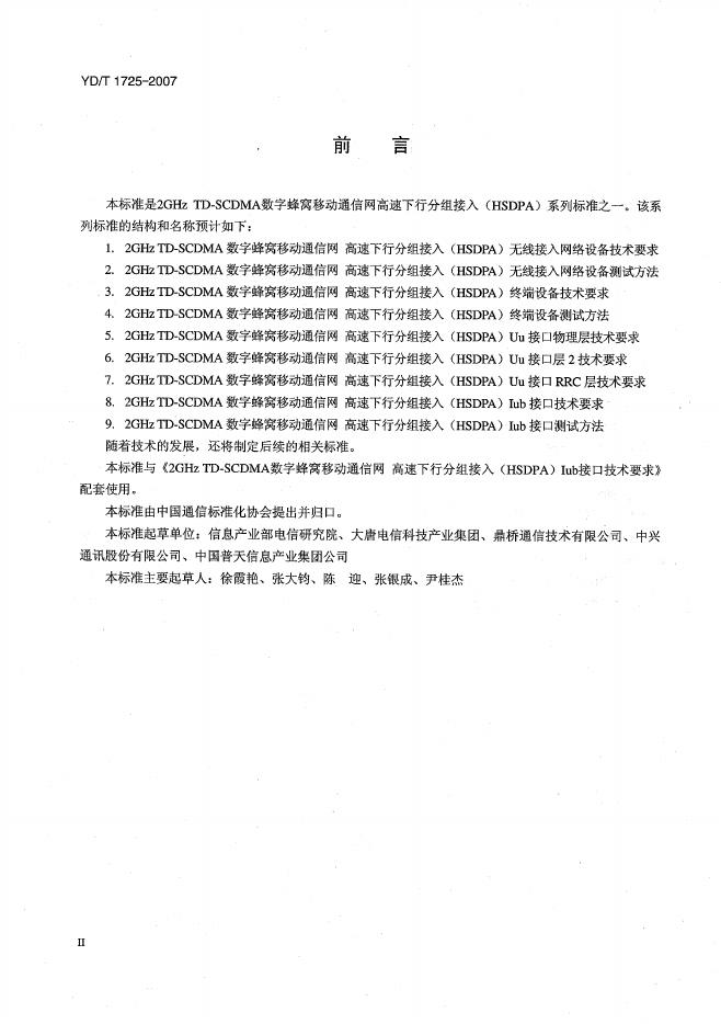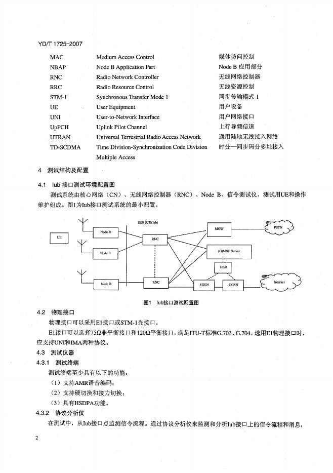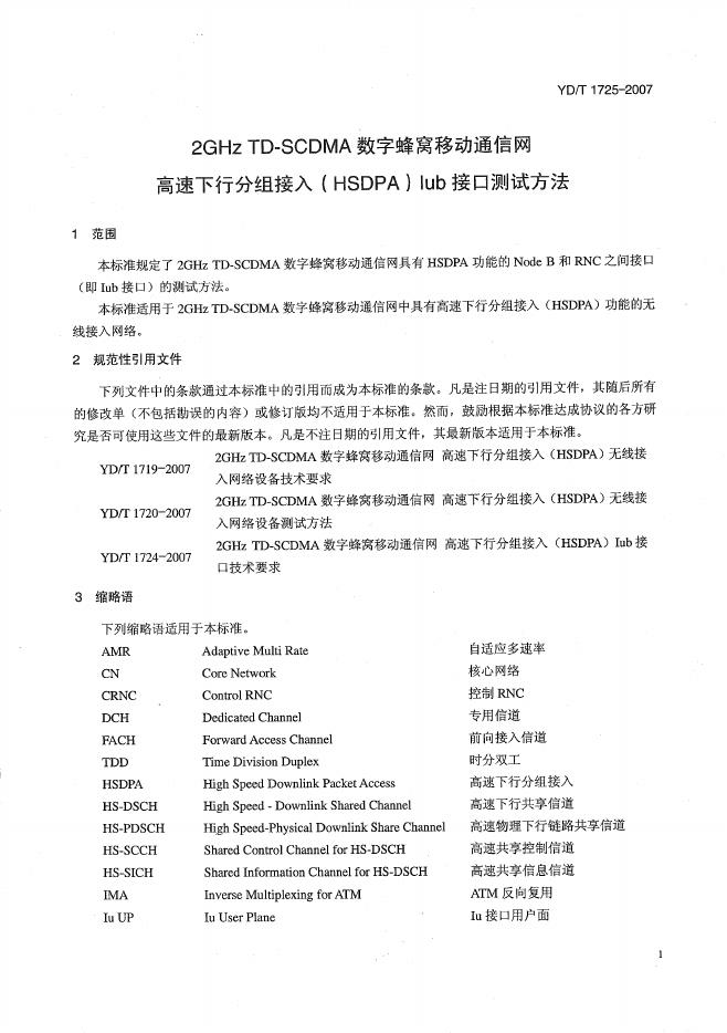 YD/T 1725-2007 2GHz TD-SCDMA数字蜂窝移动通信网 高速下行分组接入(HSDPA)Iub接口测试方法
