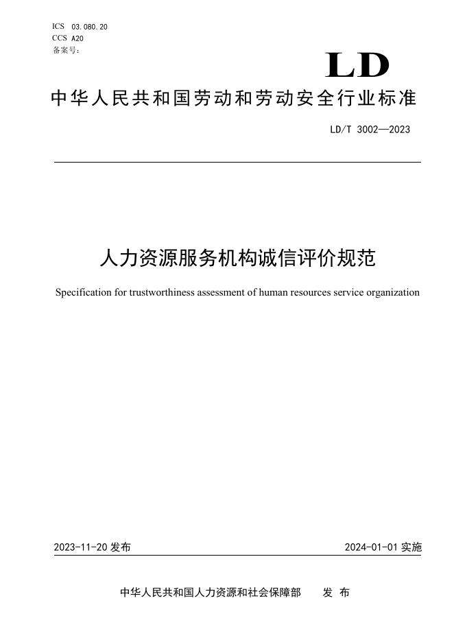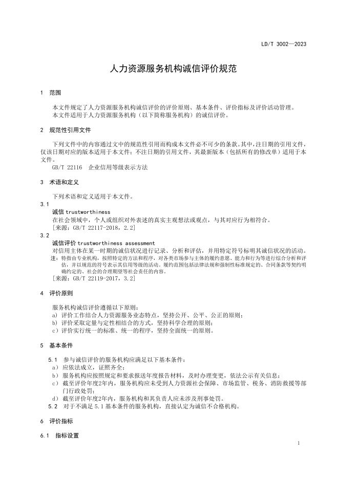 LD/T 3002-2023 人力资源服务机构诚信评价规范