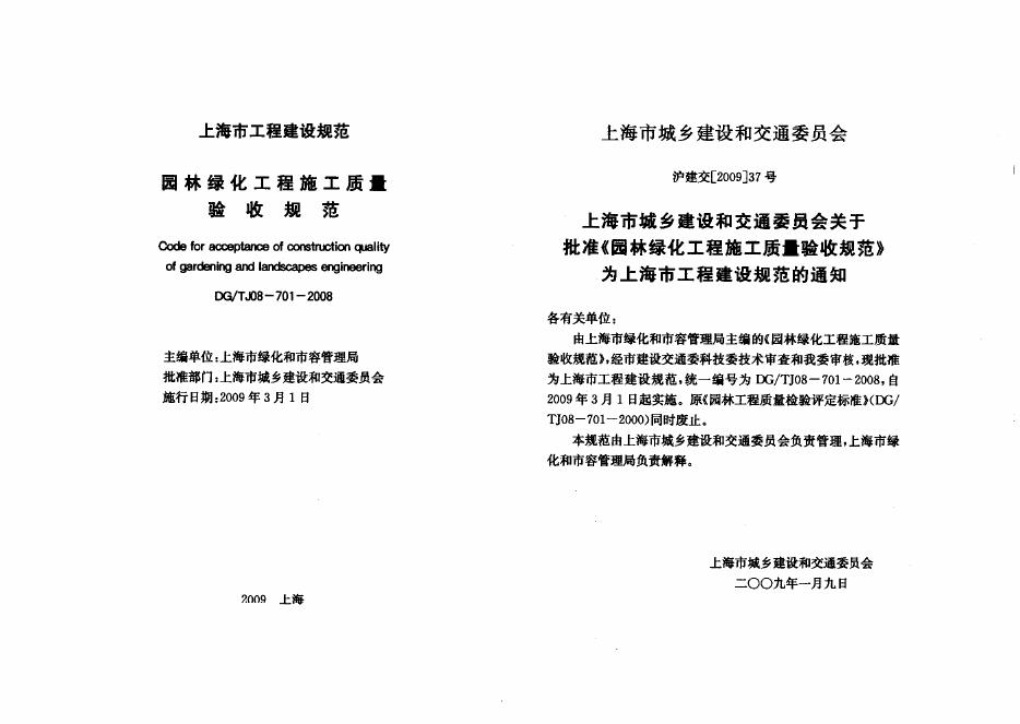 DG/TJ 08-701-2008 园林绿化工程施工质量验收规范