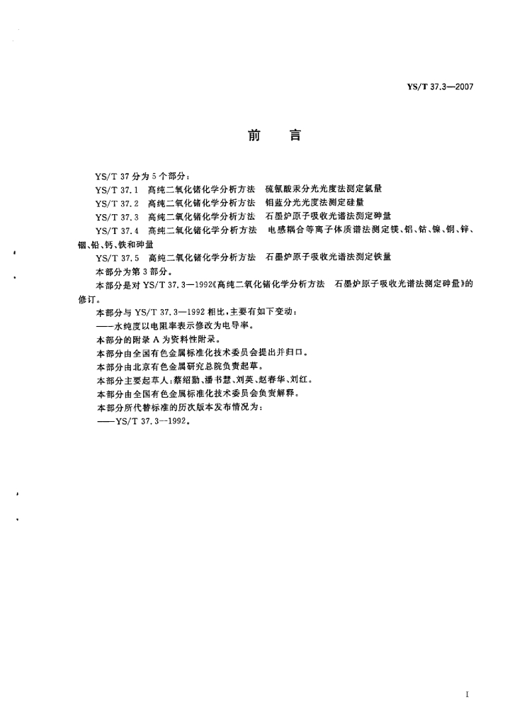 YS/T 37.3-2007 高纯二氧化锗化学分析方法石墨炉原子吸收光谱法测定砷量
