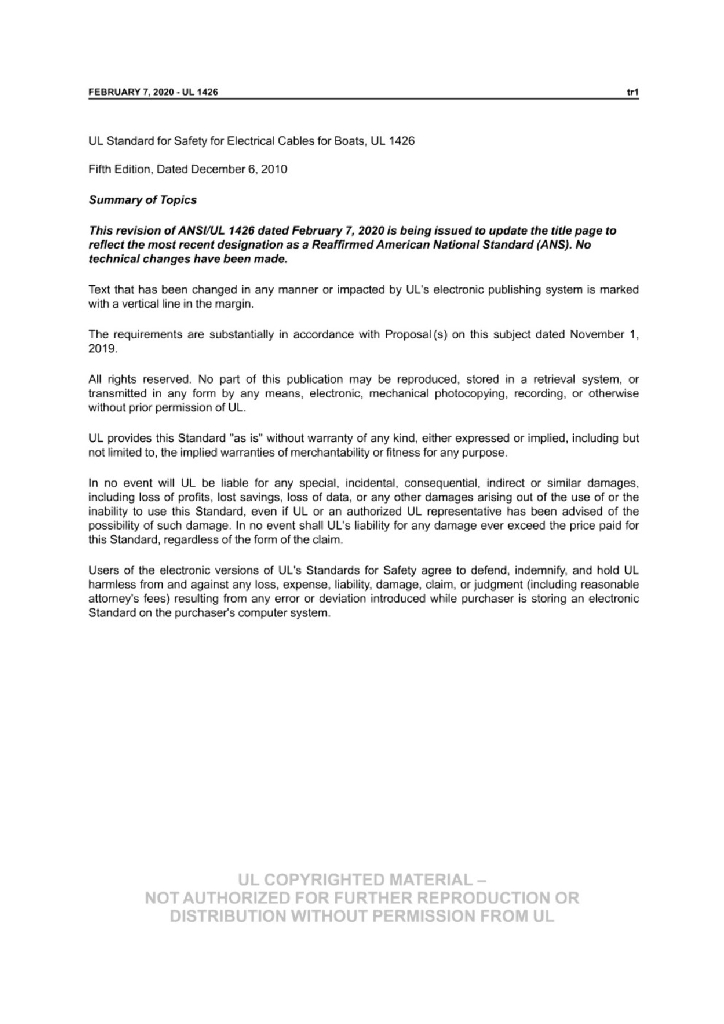 UL 1426-2010 船用电力电缆