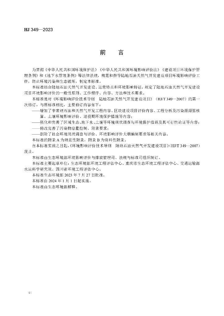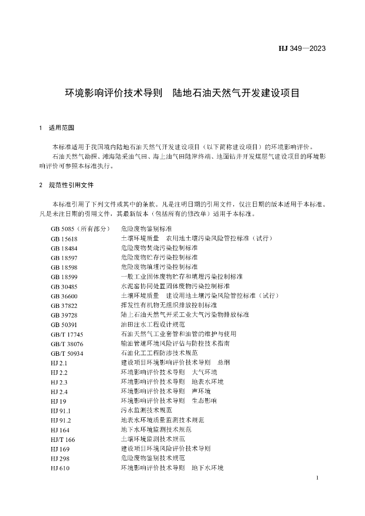 HJ 349-2023 环境影响评价技术导则 陆地石油天然气开发建设项目