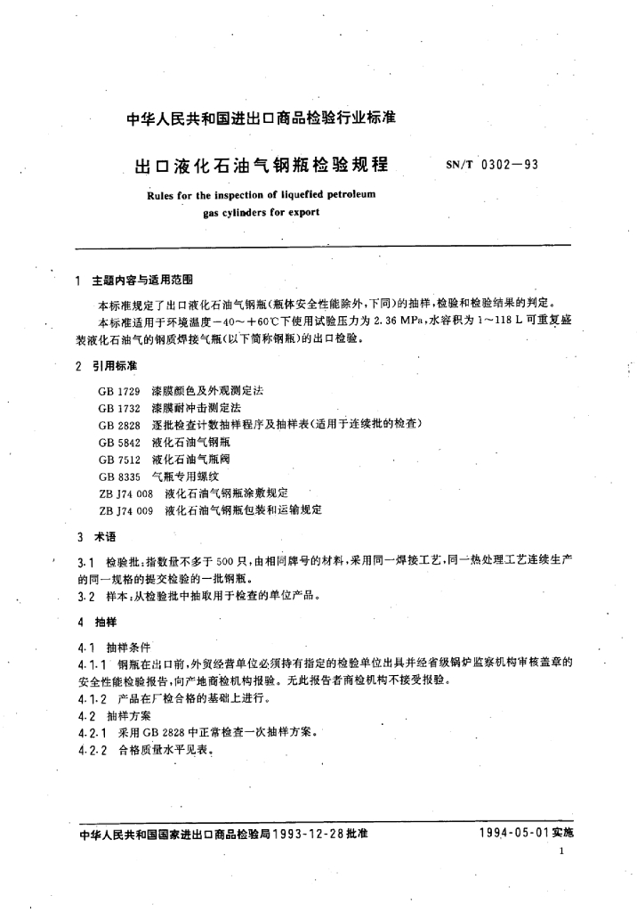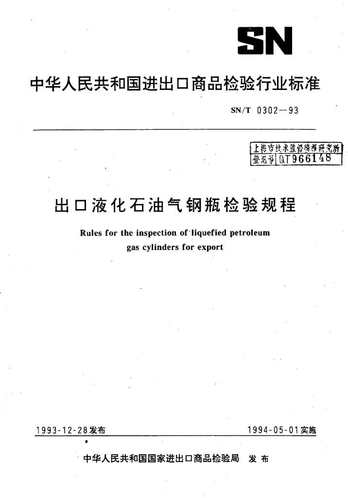 SN/T 0302-1993 出口液化石油气钢瓶检验规程