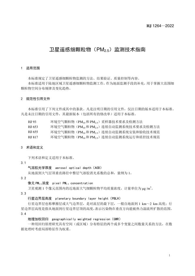 HJ 1264-2022 卫星遥感细颗粒物(PM2.5)监测技术指南