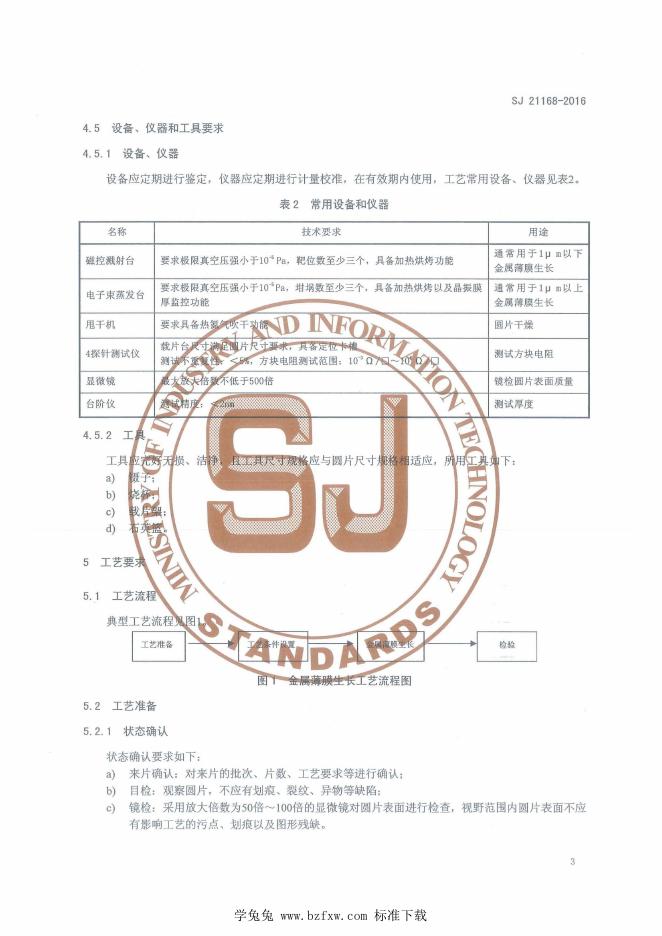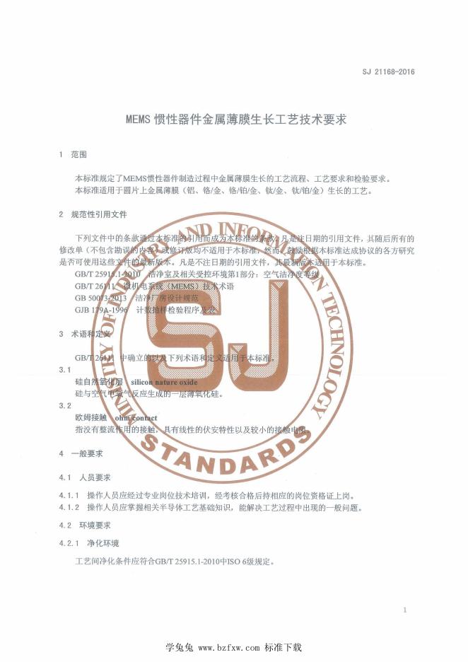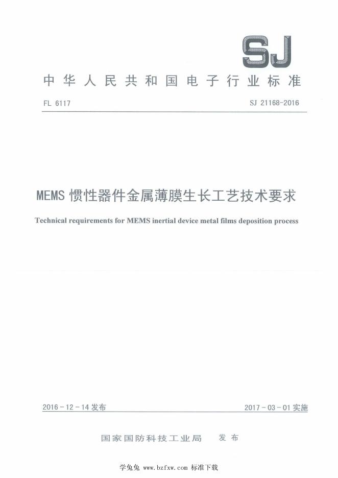 SJ 21168-2016 MEMS惯性器件金属薄膜生长工艺技术要求