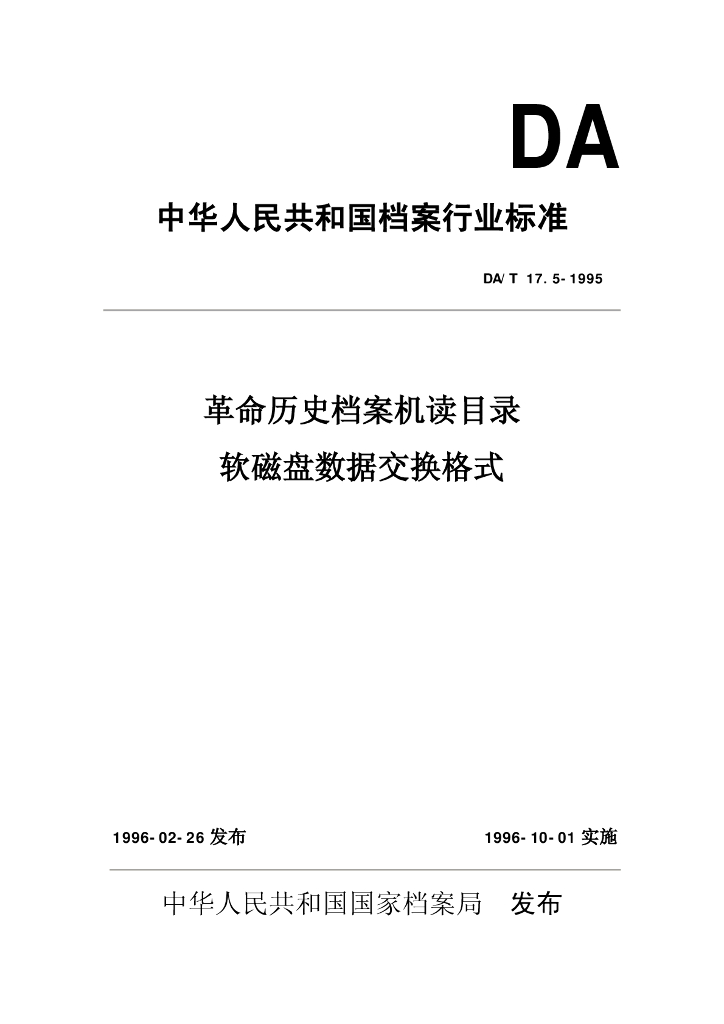 DA/T 17.5-1995 革命历史档案机读目录软磁盘数据交换格式