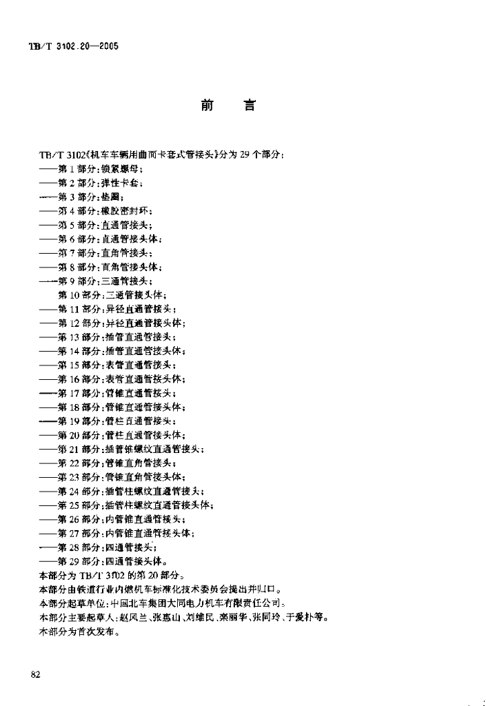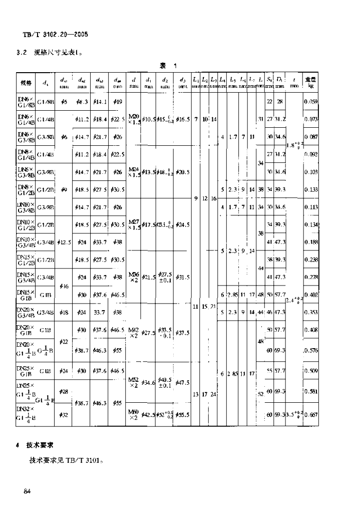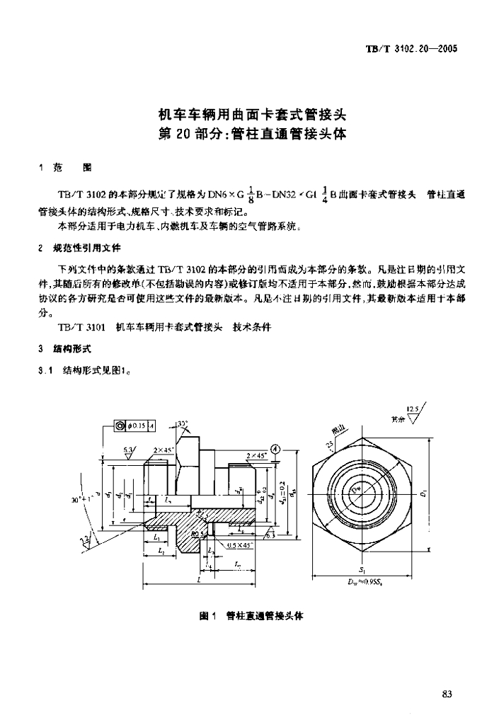 TB/T 3102.20-2005 机车车辆用曲面卡套式管接头 第20部分:管柱直通管接头体