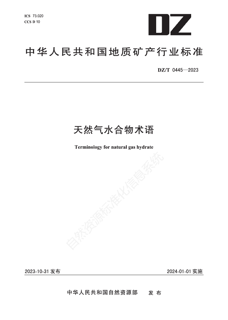 DZ/T 0445-2023 天然气水合物术语