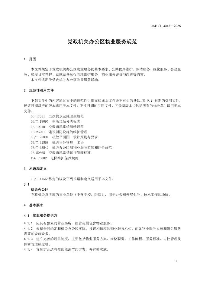 DB41/T 3042-2025 党政机关办公区物业服务规范
