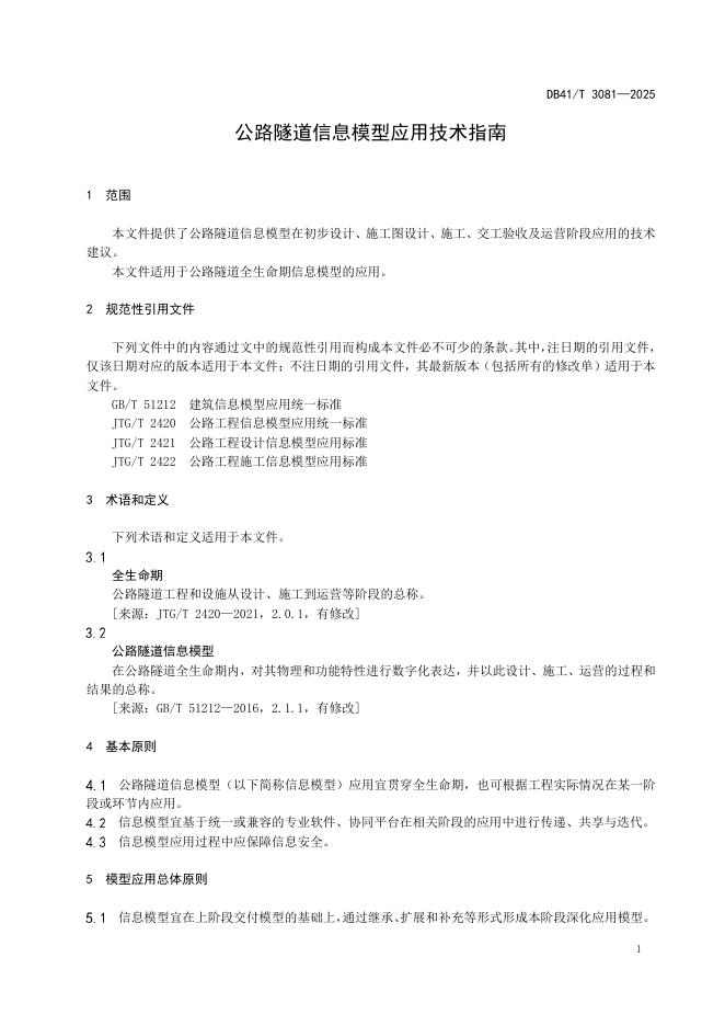 DB41/T 3081-2025 公路隧道信息模型应用技术指南