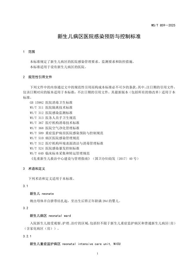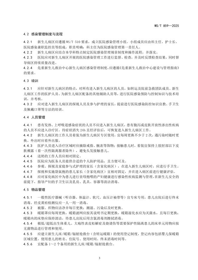 WS/T 859-2025 新生儿病区医院感染预防与控制标准