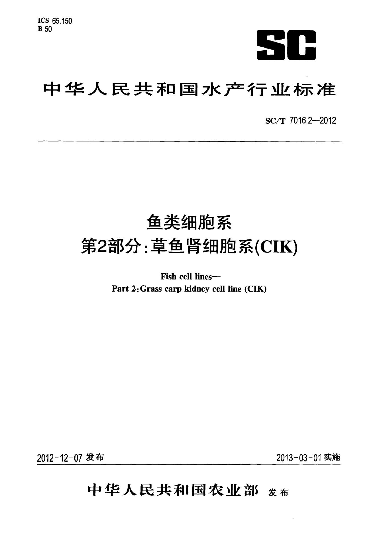 SC/T 7016.2-2012 鱼类细胞系 第2部分:草鱼肾细胞系(CIK)