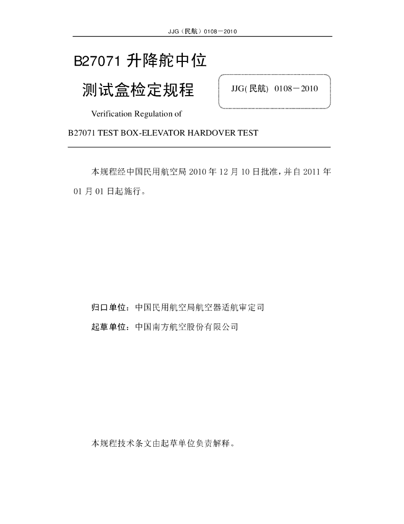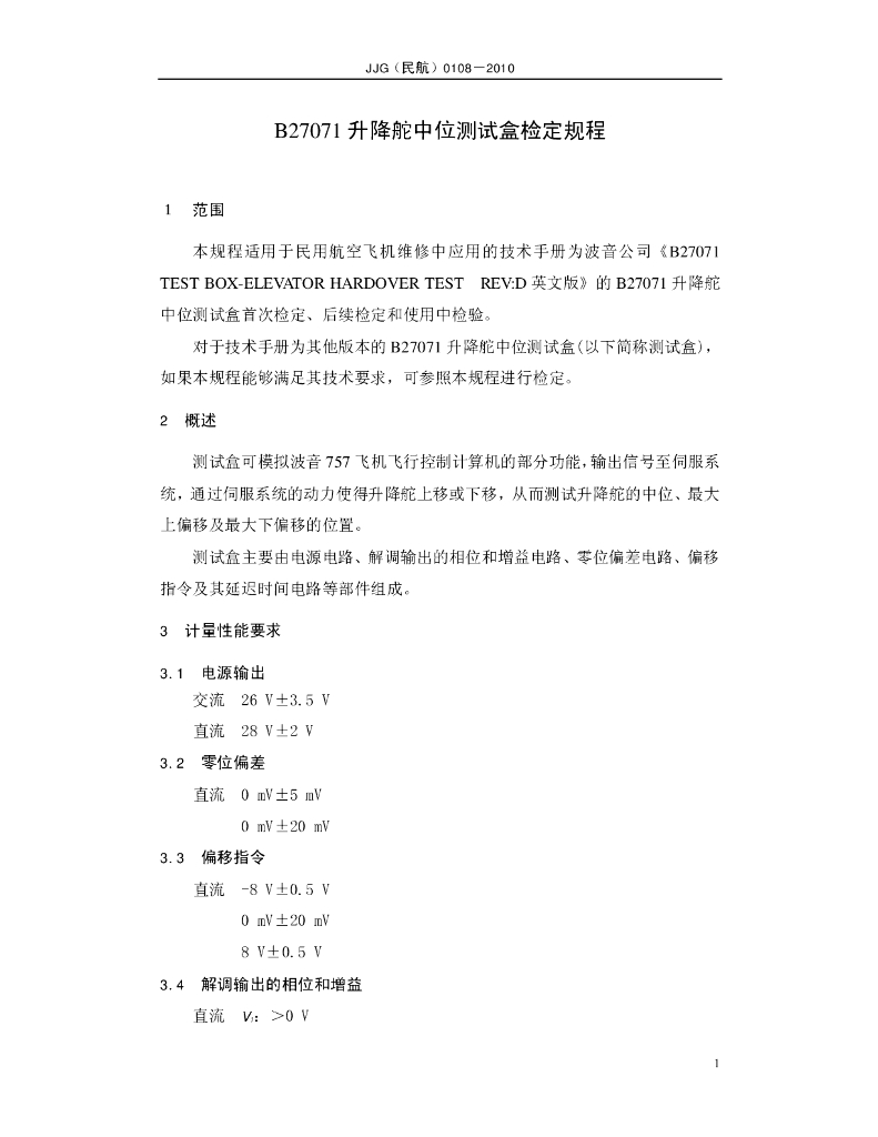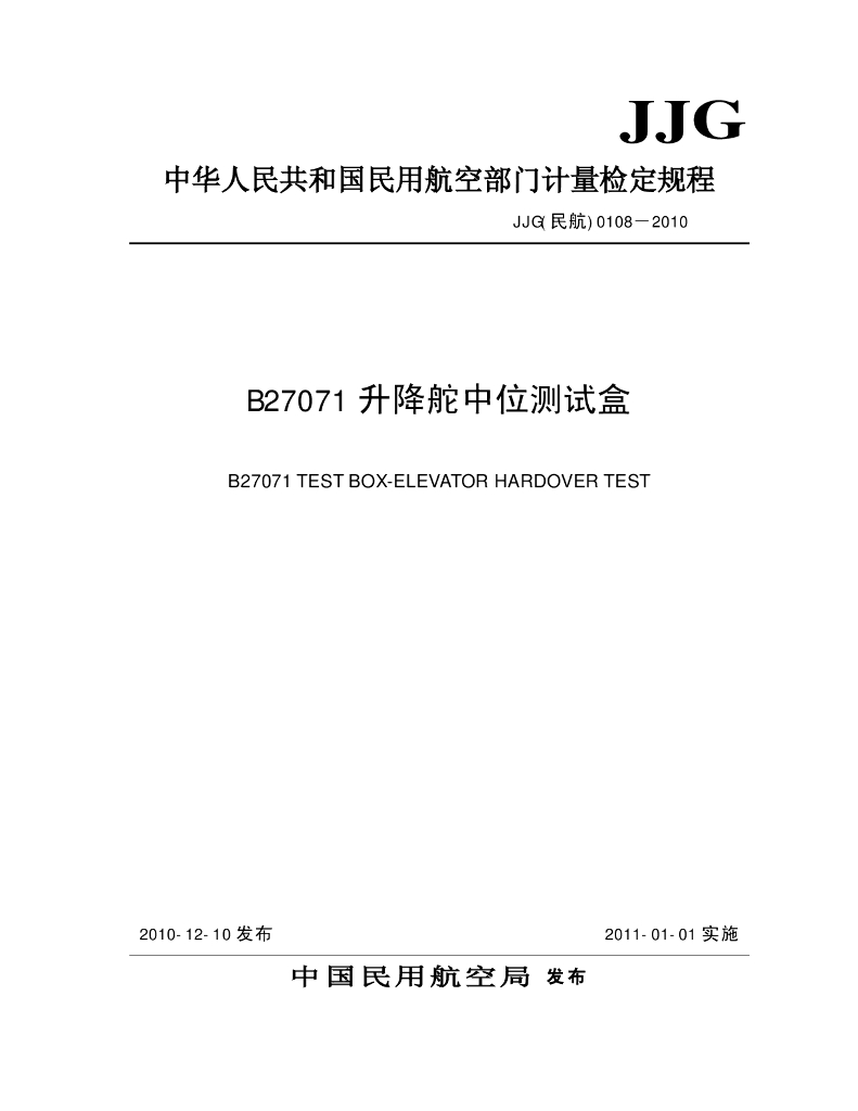 JJG(民航)0108-2010 B27071升降舵中位测试盒