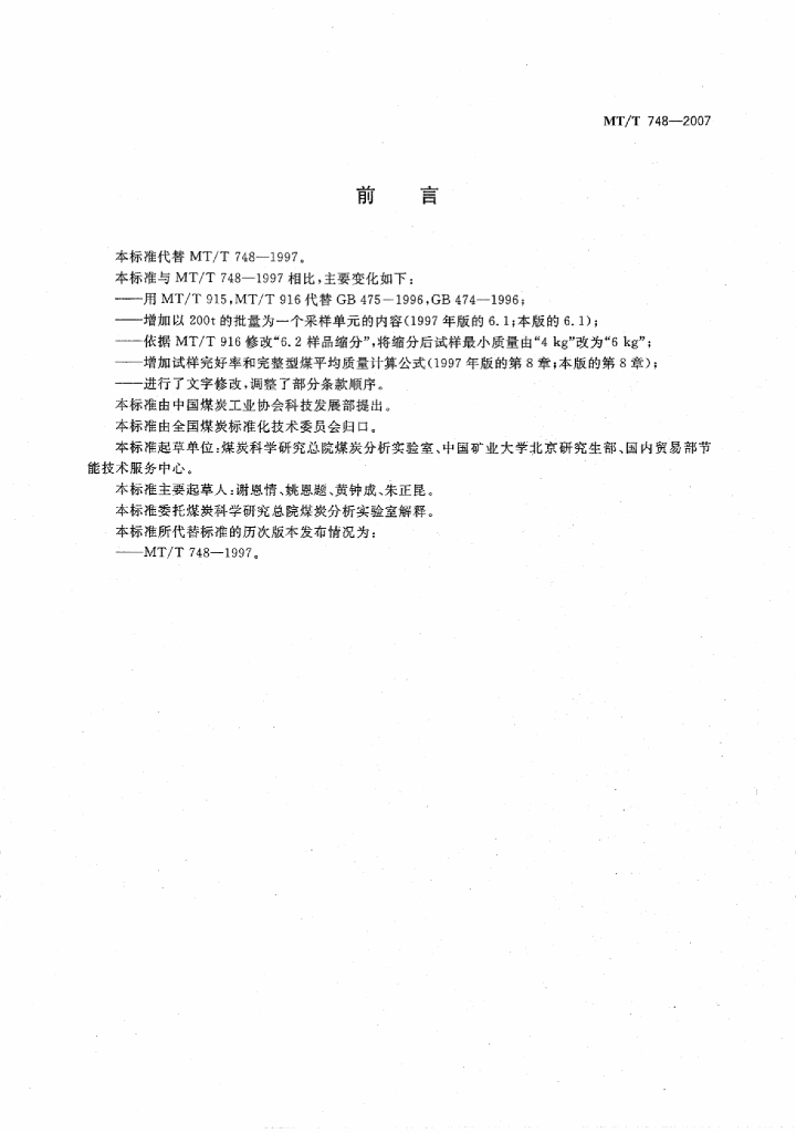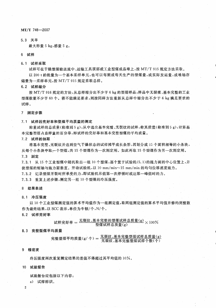 MT/T 748-2007 工业型煤冷压强度测定方法