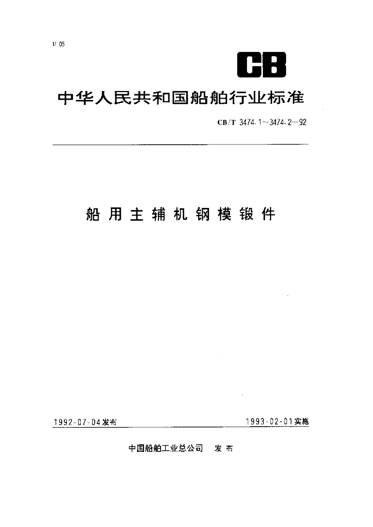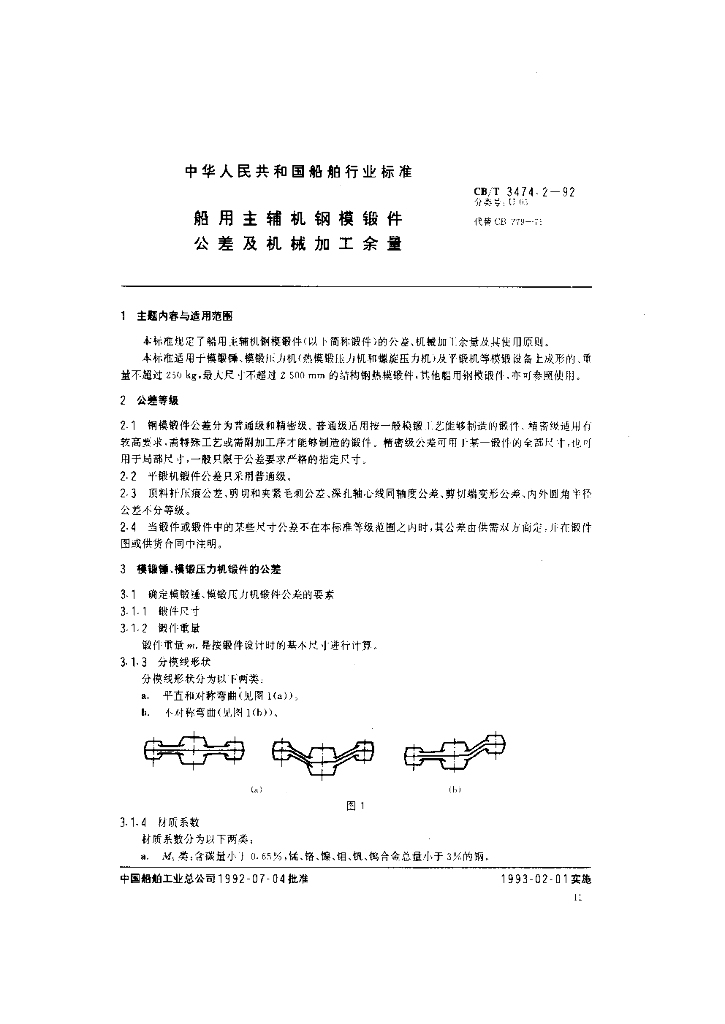 CB/T 3474.2-1992 船用主辅机钢模锻件公差及机械加工余量