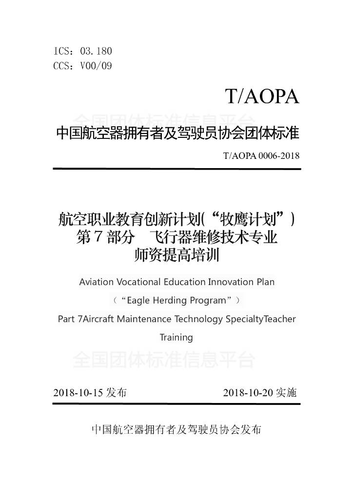 T/AOPA 0006-2018 航空职业教育创新计划(“牧鹰计划”) 第7部分飞行器维修技术专业 师资提高培训