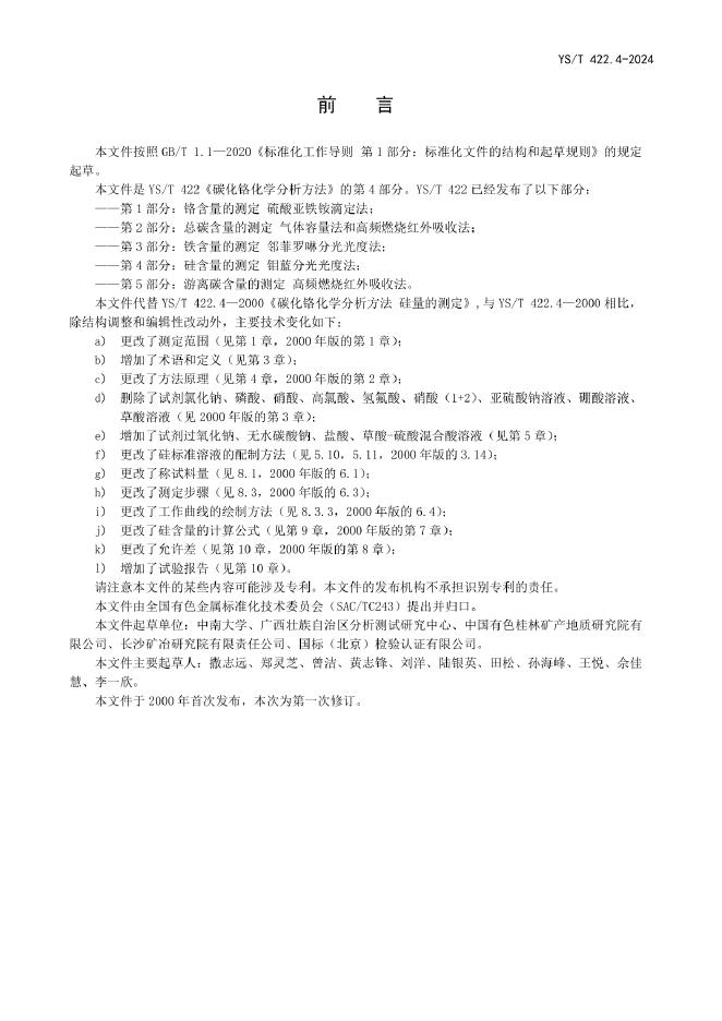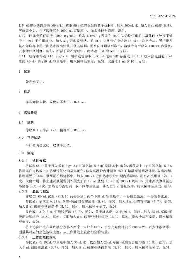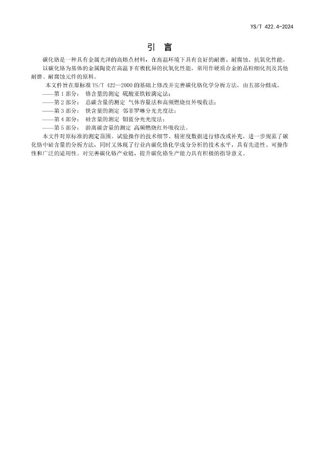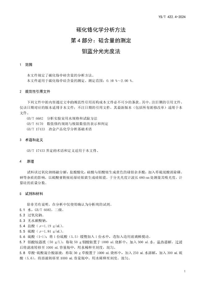 YS/T 422.4-2024 碳化铬化学分析方法 第4部分:硅含量的测定 钼蓝分光光度法