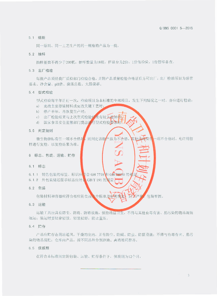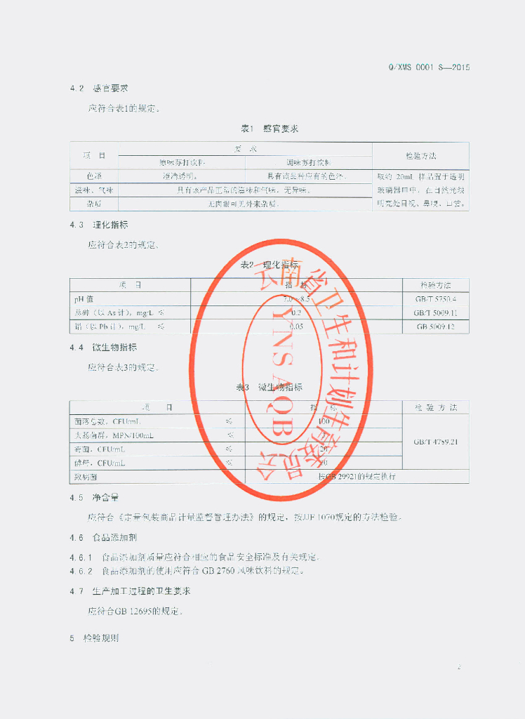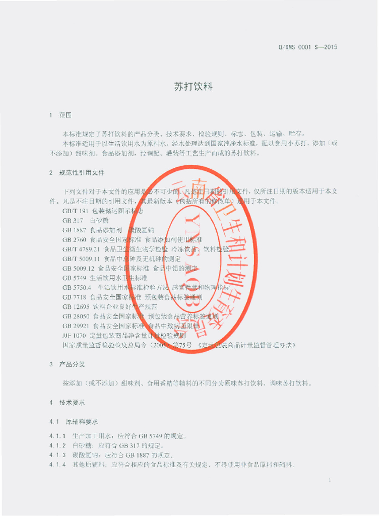 Q/XMS 0001S-2015 云南新平穆斯林汽车服务有限责任公司山绿玖山泉水厂 苏打饮料