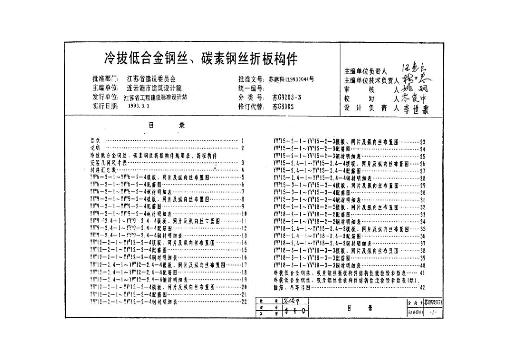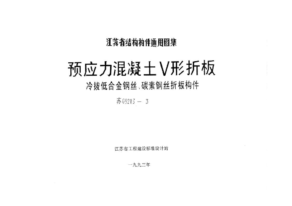 苏G9203-3 预应力混凝土V形折板(冷拔低合金钢丝、碳素钢丝折板构件)图集