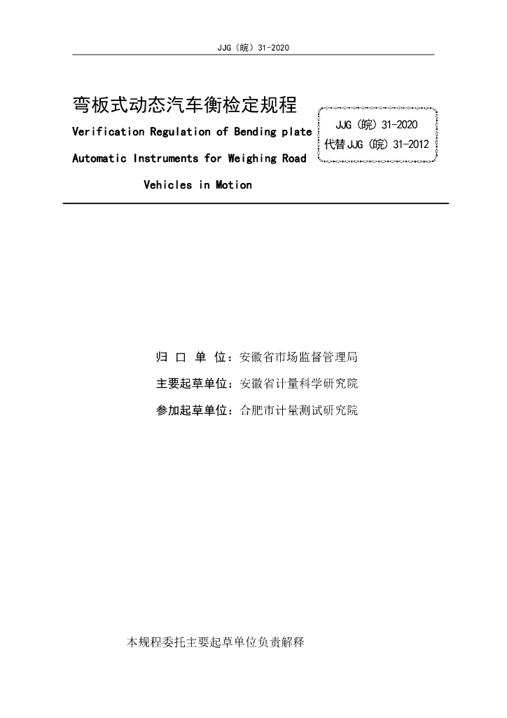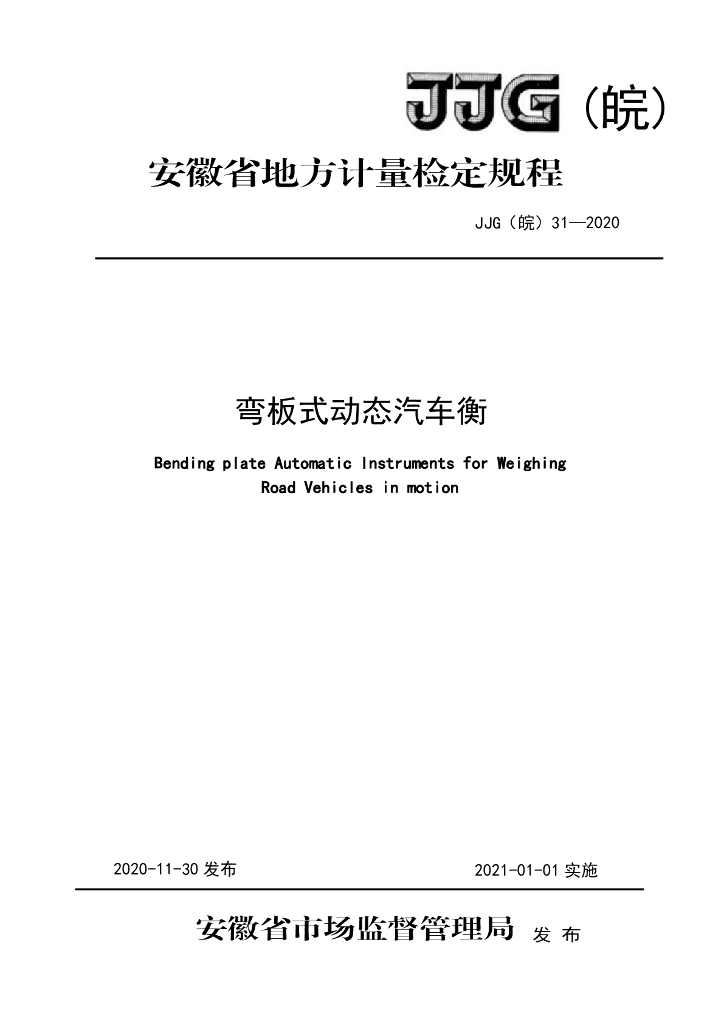 JJG(皖)31-2020 弯板式动态汽车衡检定规程