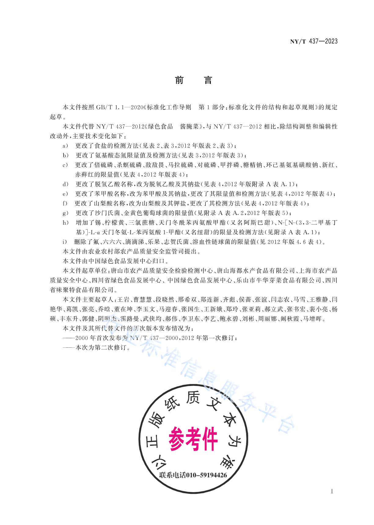 唐山海都水产食品有限公司、唐山市农产品质量安全检验检测中心、上海市农产品质量安全中心、四川省绿色食品发展中心、中国绿色食品发展中心、乐山市牛华芽菜食品有限公司、四川省味聚特食品有限公司