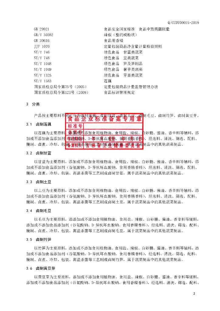 Q/CCDY 0001S-2019 卤制蔬菜