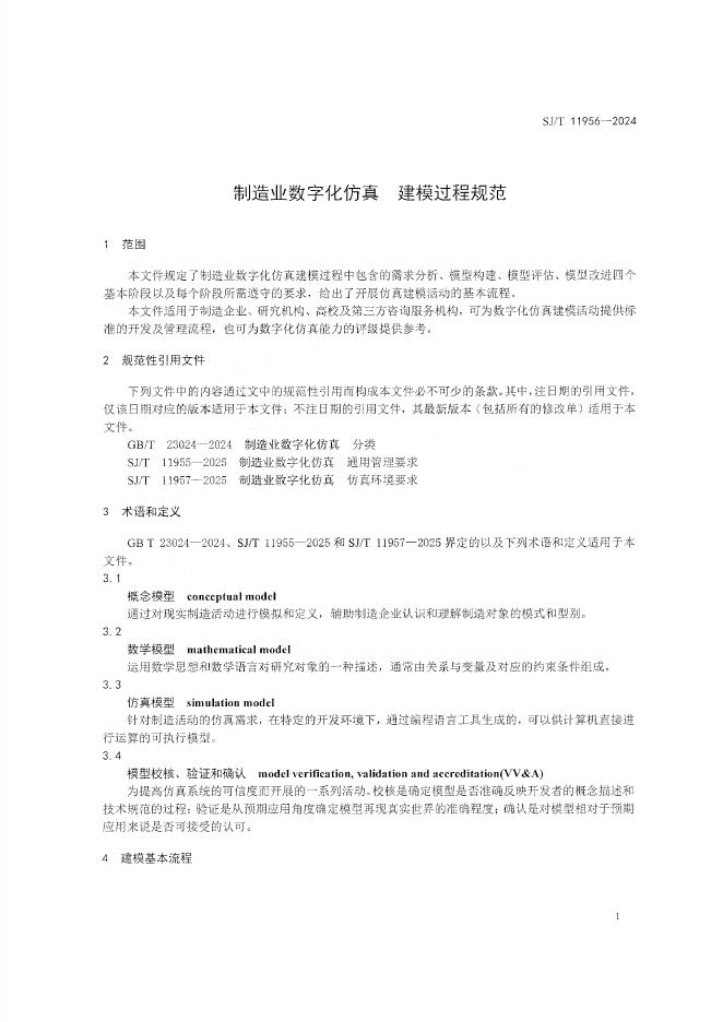 SJ/T 11956-2024 制造业数字化仿真 建模过程规范
