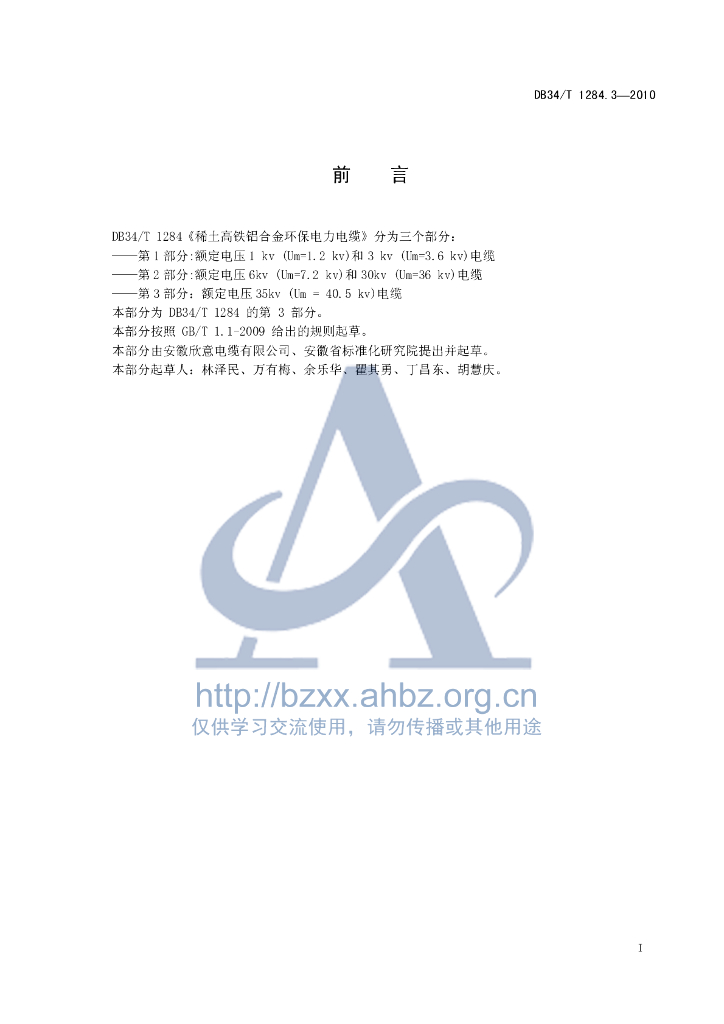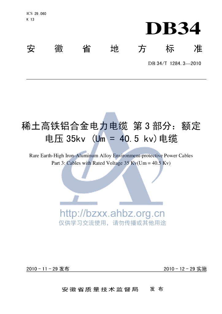 DB34/T 1284.3-2010 稀土高铁铝合金电力电缆 第3部分:额定电压35kv (Um=40.5 kv)电缆