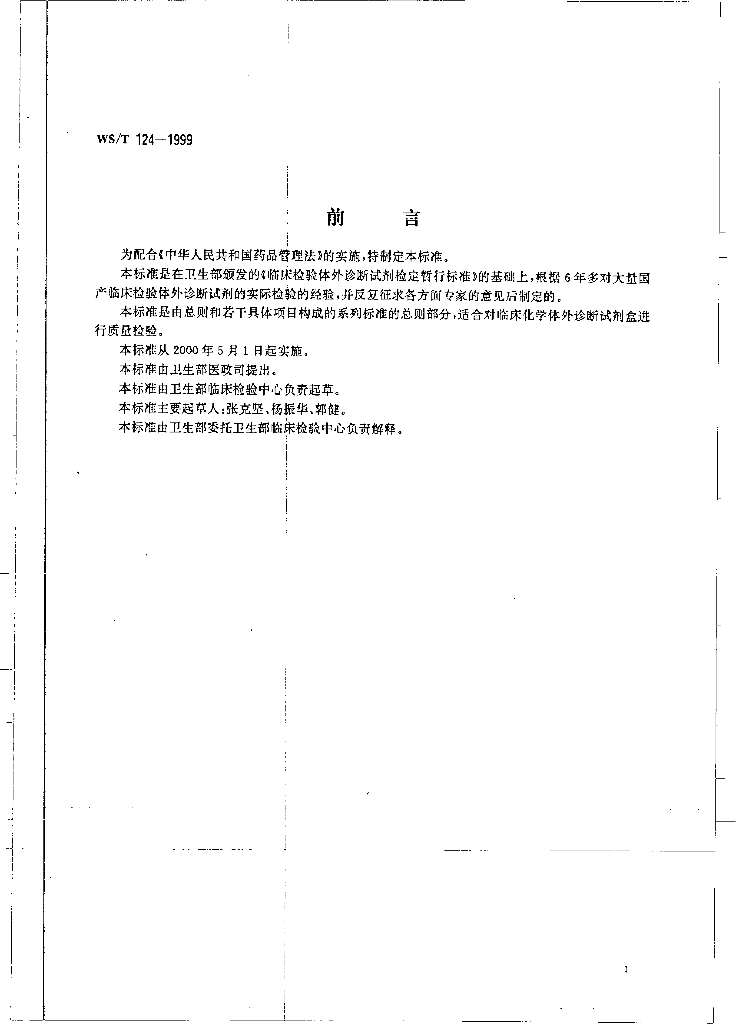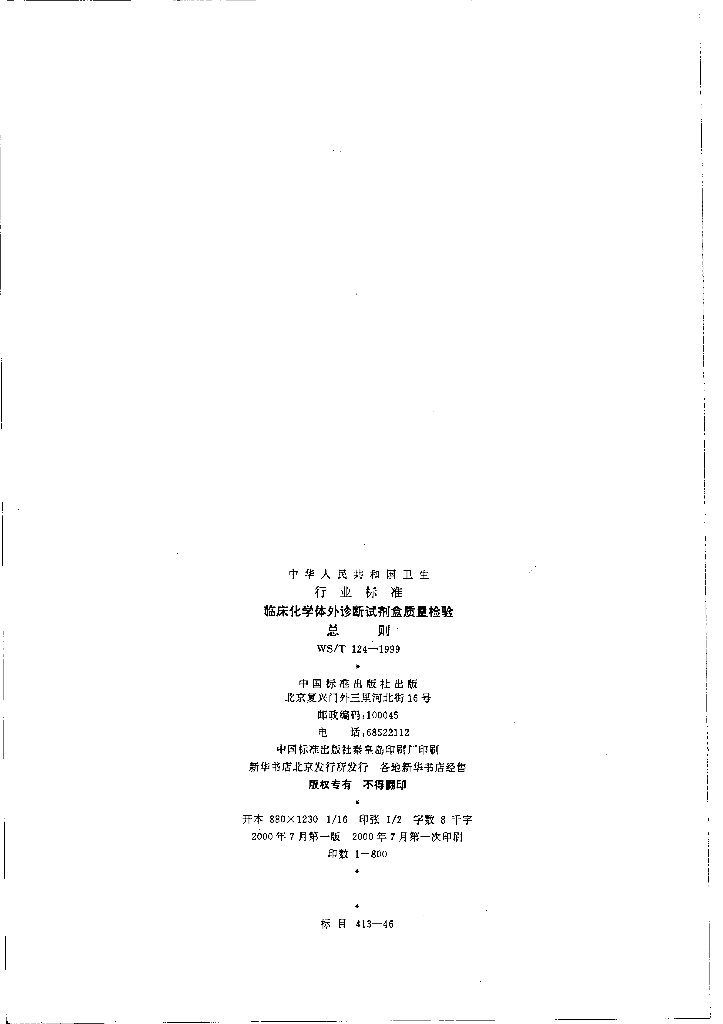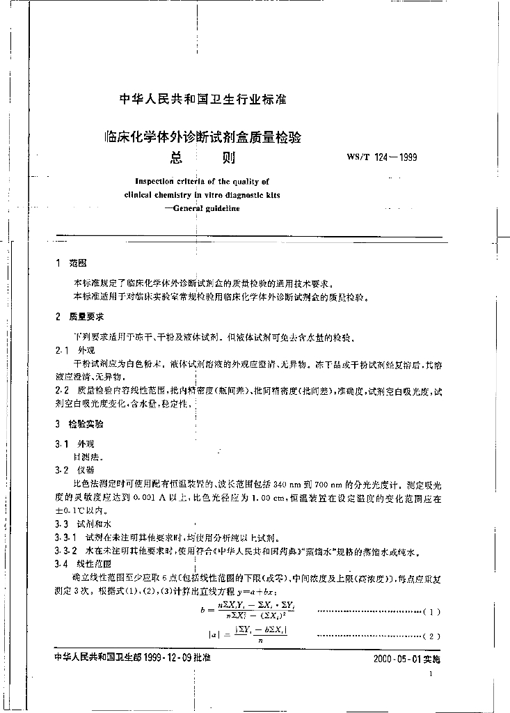 WS/T 124-1999 临床化学体外诊断试剂盒质量检验总则