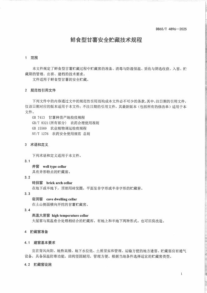 DB65/T 4896-2025 鲜食型甘薯安全贮藏技术规程