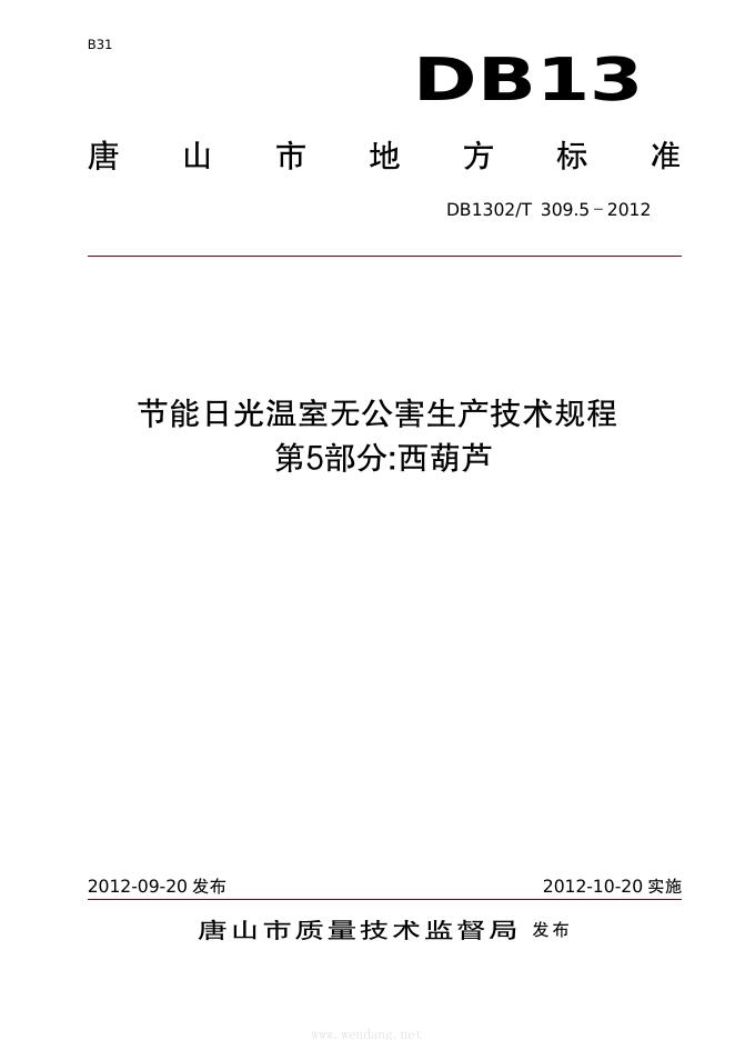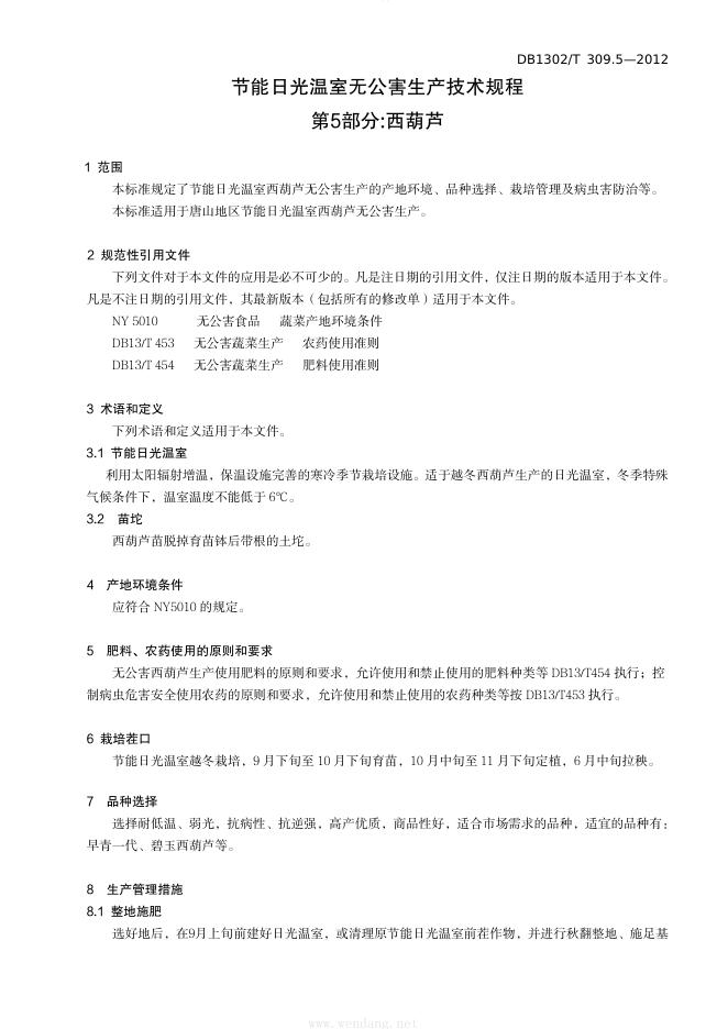 DB1302/T 309.5-2012 节能日光温室无公害生产技术规程 第5部分:西葫芦
