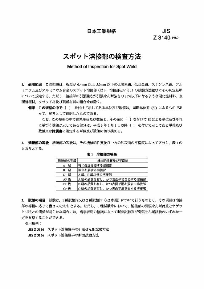 JIS Z3140-1989 点焊焊缝的检验方法