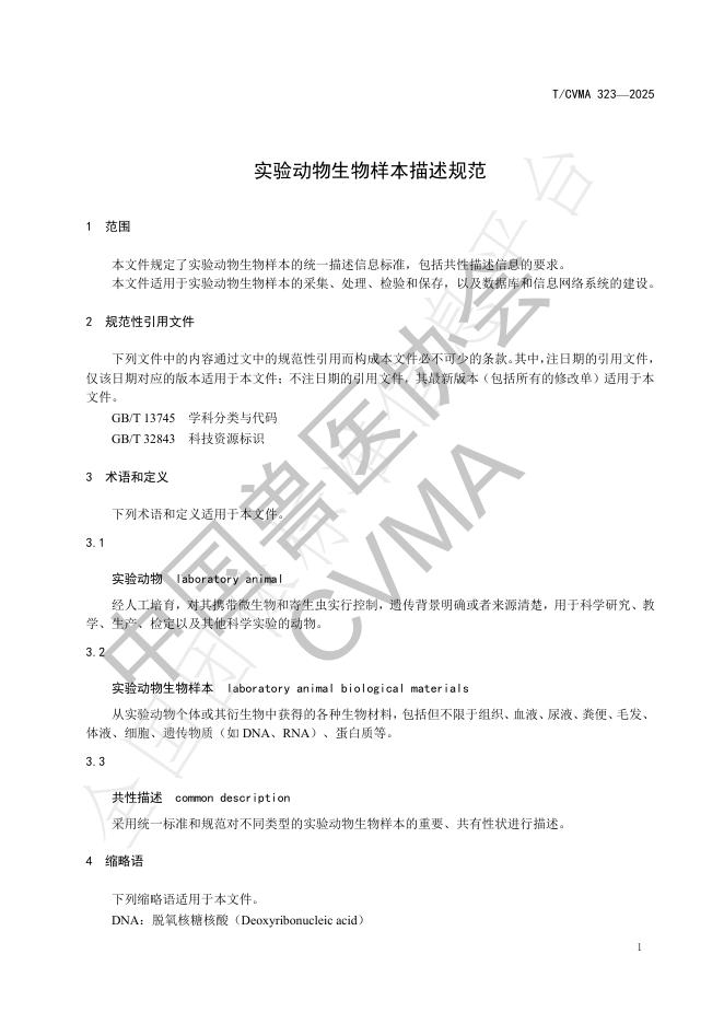 T/CVMA 323-2025 实验动物生物样本描述规范