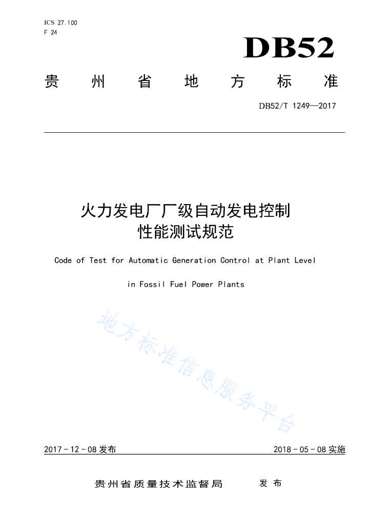 DB52/T 1249-2017 火力发电厂厂级自动发电控制