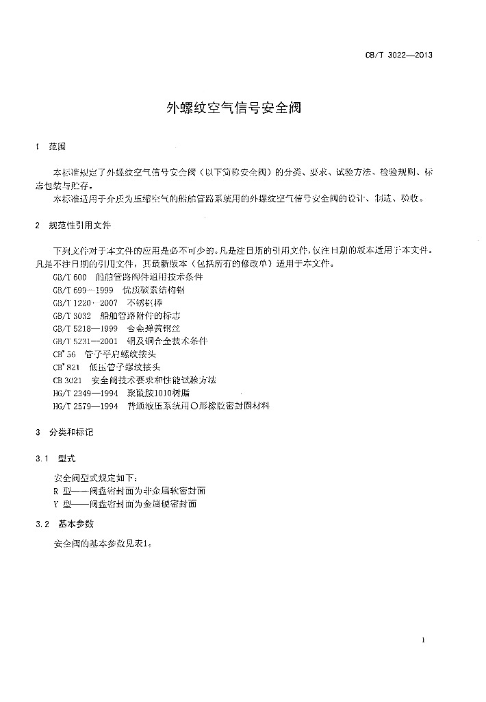 CB/T 3022-2013 外螺纹空气信号安全阀