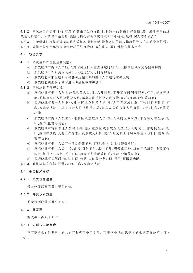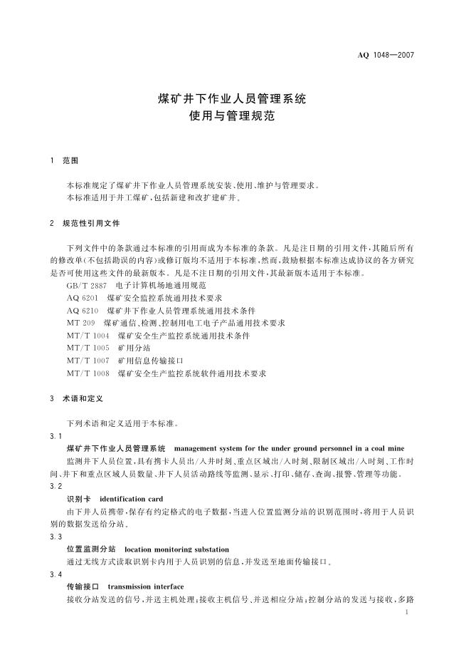 AQ/T 1048-2007 煤矿井下作业人员管理系统使用与管理规范