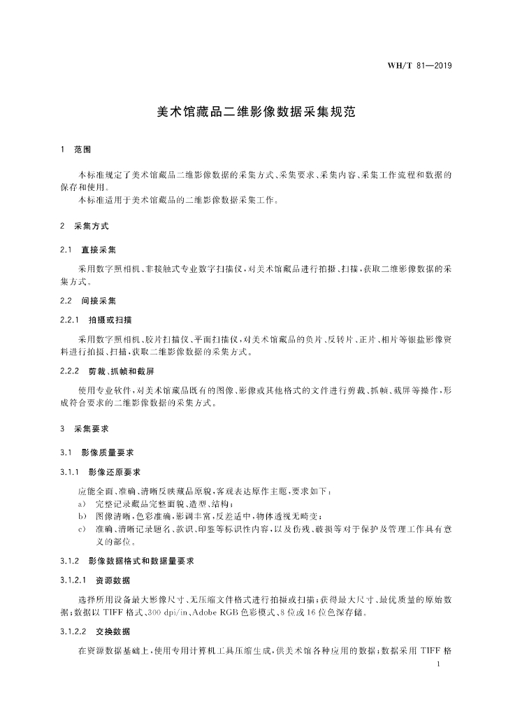 WH/T 81-2019 美术馆藏品二维影像采集规范