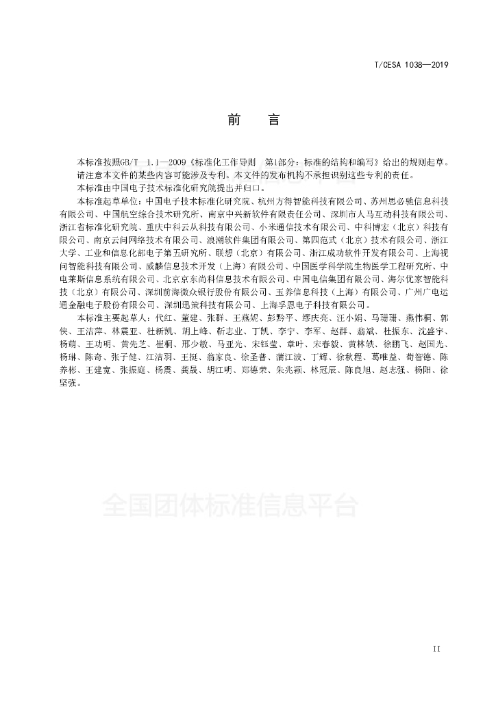 中国电子技术标准化研究院、杭州方得智能科技有限公司、苏州思必驰信息科技有限公司、中国航空综合技术研究所、南京中兴新软件有限责任公司、深圳市人马互动科技有限公司、浙江省标准化研究院、重庆中科云从科技有限公司、小米通信技术有限公司、中科博宏(北京)科技有限公司、南京云问网络技术有限公司、浪潮软件集团有限公司、第四范式(北京)技术有限公司、浙江大学、工业和信息化部电子第五研究所、联想(北京)有限公司、浙江成功软件开发有限公司、上海视问智能科技有限公司、威麟信息技术开发(上海)有限公司、中国医学科学院生物医学工程
