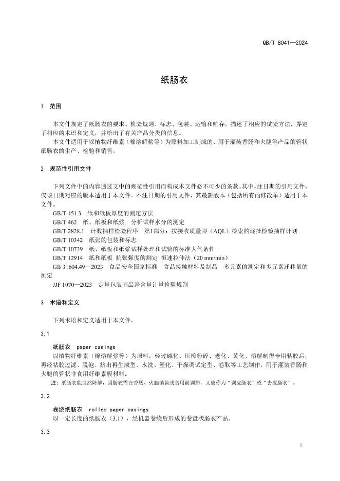 QB/T 8041-2024 纸肠衣
