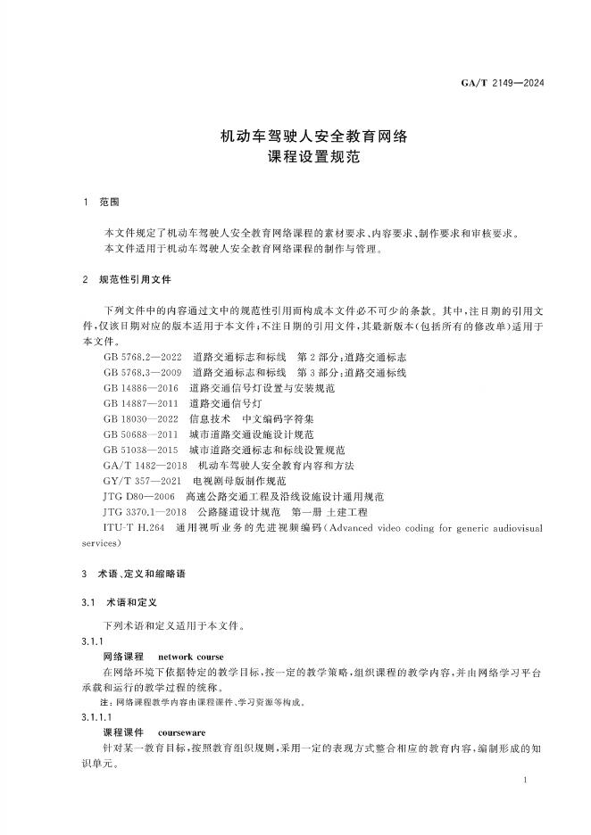 GA/T 2149-2024 机动车驾驶人安全教育网络课程设置规范