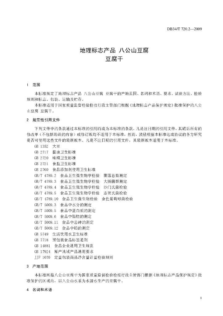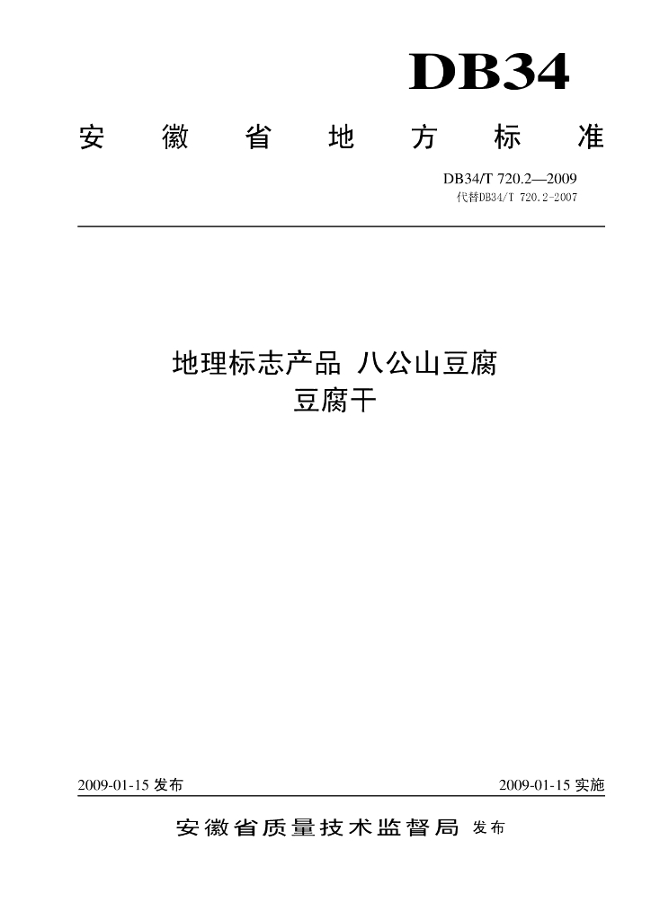 DB34/T 720.2-2009 地理标志产品 八公山豆腐 豆腐干