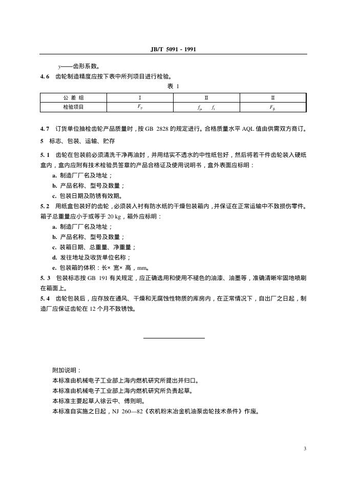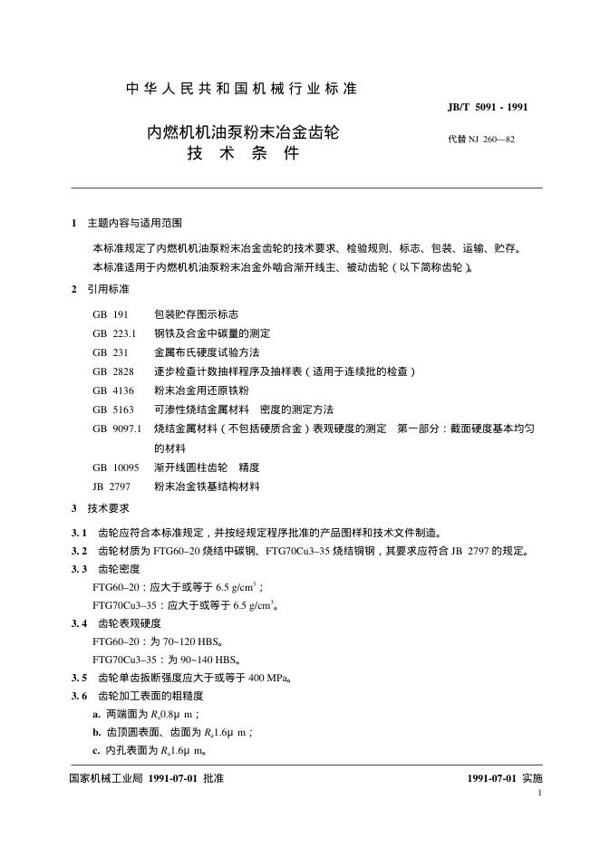 JB/T 5091-1991 内燃机机油泵粉末冶金齿轮 技术条件