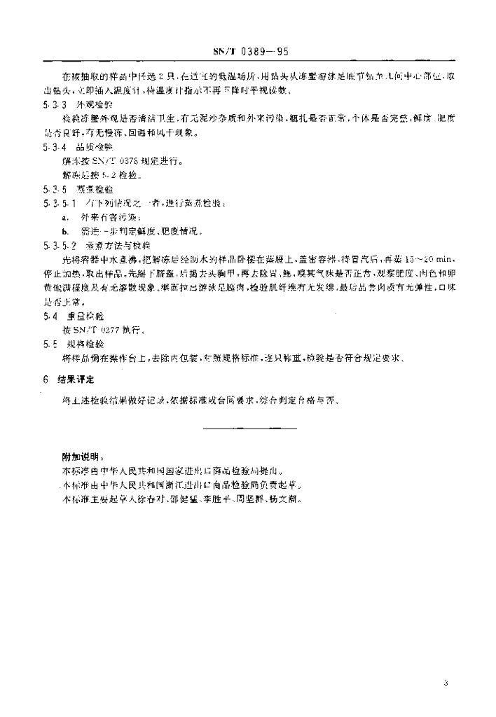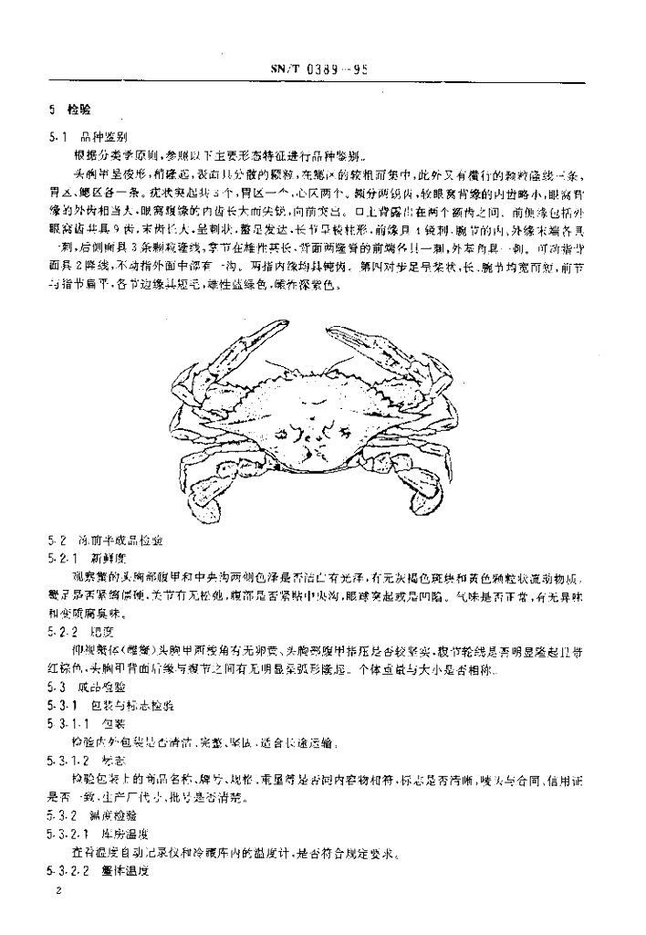 SN/T 0389-1995 出口冻梭子蟹检验规程