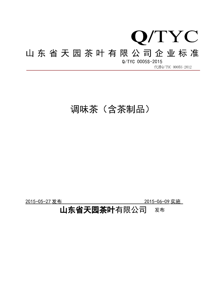 Q/TYC 0005S-2015 山东省天园茶叶有限公司 调味茶(含茶制品)